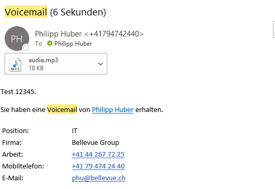 Sprachnachrichten werden automatisch in Textumgewandelt und per Email an den Empfänger gesendet. (Das funktioniert bei deusch recht gut und bei schweizerdeutsch überhaupt nicht). | ![]() |