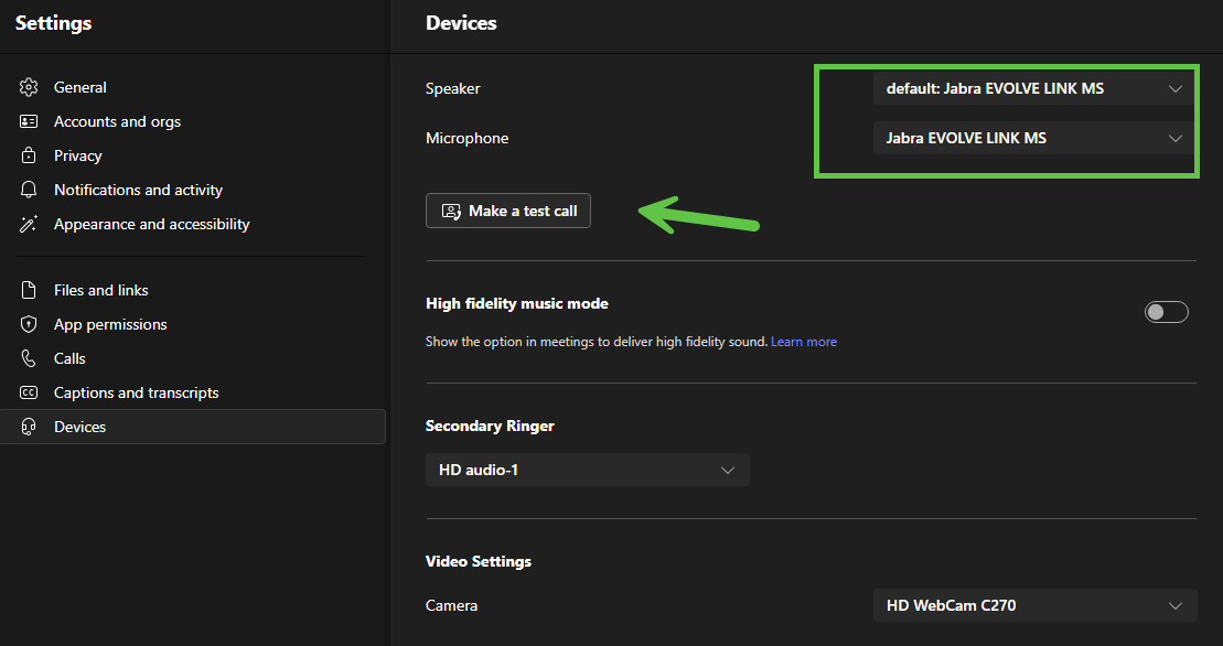 Wichtig für das Telefonieren mit Headset ist, dass bei den Audio Settings bei Speaker und bei Microphone als Gerät effektiv das angeschlossene Headset ausgewählt ist. Es besteht die Möglichkeit, dies mit einem Testcall zu prüfen. | ![]() |