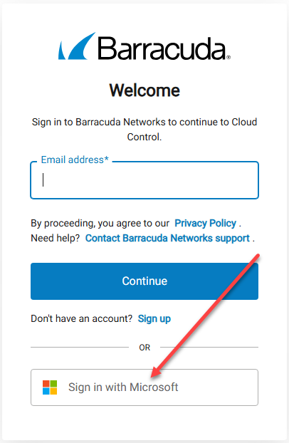 - Open a browser within the Bellevue Workplace (Citrix) and go to https://sso.barracuda.com/u/login and select "Sign in with Microsoft":