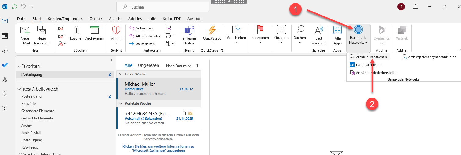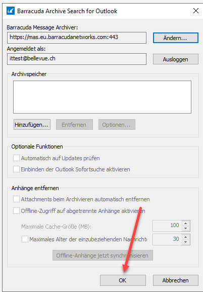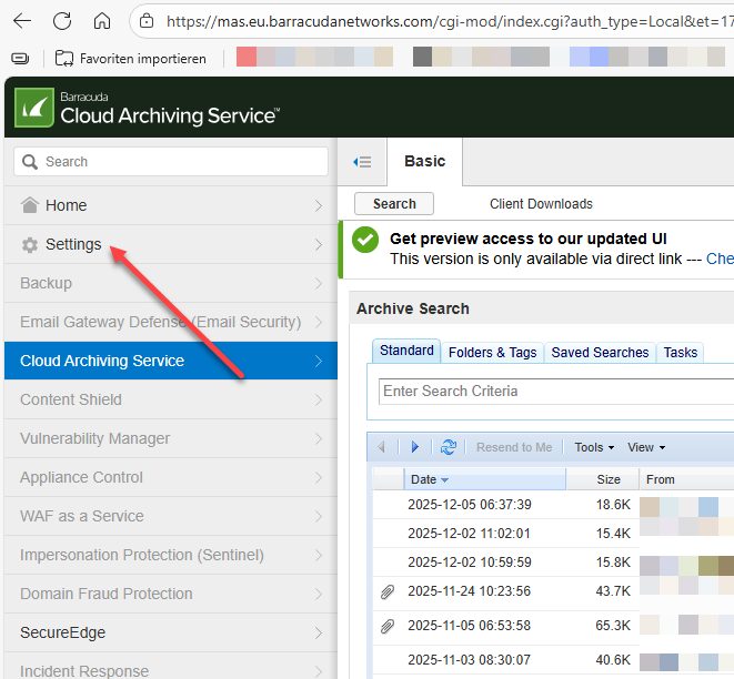 - The best thing to do afterwards is to immediately start a search in the Barracuda archive to check if access is working:
