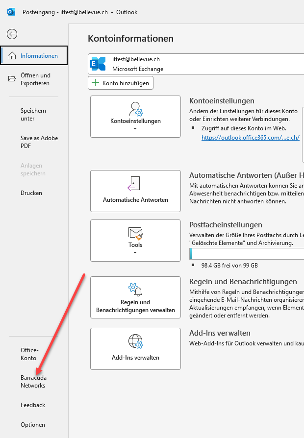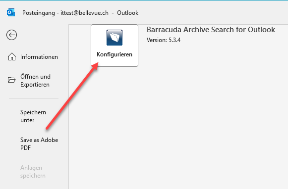 - Now open your Outlook and go to File (top right in Outlook) and then select "Barracuda Networks" followed by "Configure":